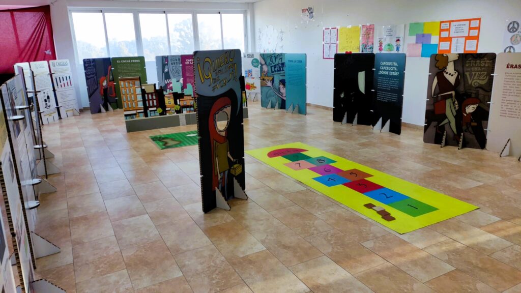 La exposición se completa con distintos 𝐣𝐮𝐞𝐠𝐨𝐬 𝐭𝐫𝐚𝐝𝐢𝐜𝐢𝐨𝐧𝐚𝐥𝐞𝐬: rayuela, canicas, la goma… para que los más mayores, muestren a los más pequeños cómo se jugaba antiguamente en nuestros pueblos. Esta exposición propone un acercamiento atractivo y multidimensional a un asunto complejo que presenta múltiples perspectivas, y puede ser un recurso especialmente interesante para aquellos municipios que están desarrollando programas de mejora de la movilidad urbana y quieren involucrar a la población infantil.