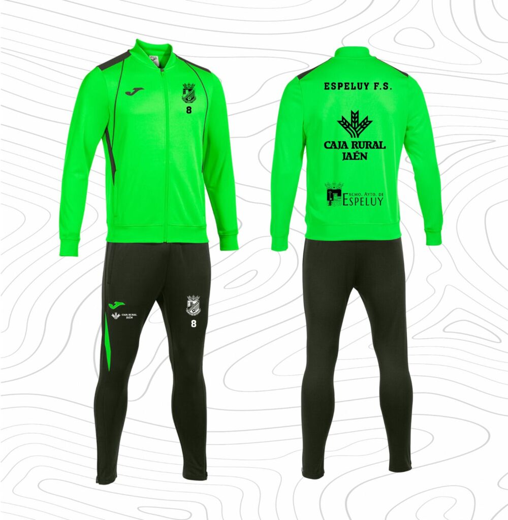 En la tarde de ayer, nuestro Alcalde Sebastián Lijarcio hizo entrega de las 𝗻𝘂𝗲𝘃𝗮𝘀 𝗲𝗾𝘂𝗶𝗽𝗮𝗰𝗶𝗼𝗻𝗲𝘀 de chándal al equipo de Fútbol Sala Espeluy F.S. valoradas en 𝟭𝟰𝟬𝟬 𝗲𝘂𝗿𝗼𝘀. Unas equipaciones de gran calidad, de la marca Joma, en un llamativo verde que hace honor a Caja Rural y que simboliza la energía y la unidad del conjunto.